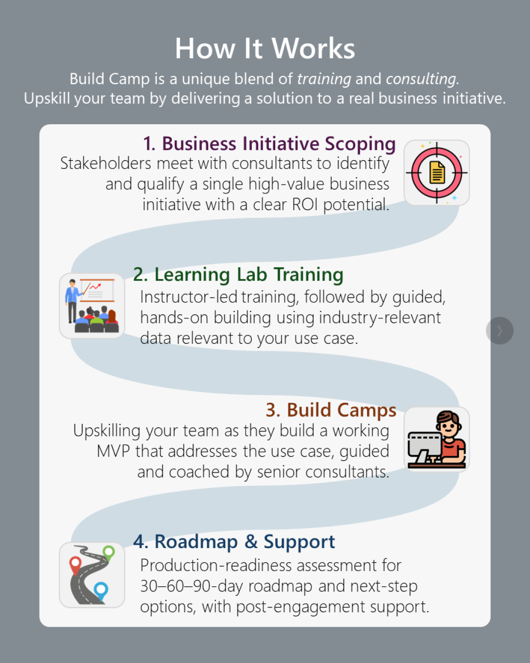 Start with a Business Initiative Scoping Session to identify high-impact opportunities for your team.